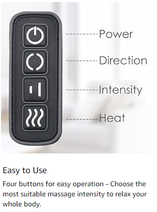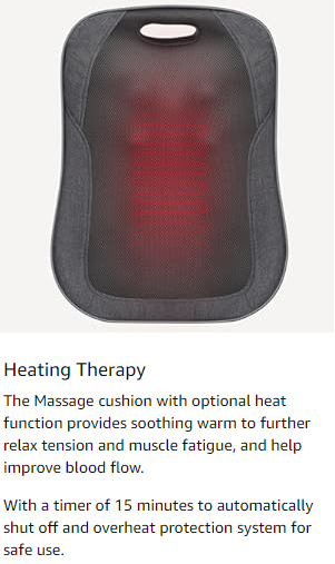 - Heating Therapy - The Chair massager with optional heat function, provides soothing warm to further relax tension and help improve blood flow. This massage cushion is set a timer of 15 minutes to automatically shut off and has overheat protection system for safe use.
