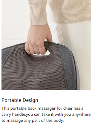 - Versatile Use-This portable back massager for chair with carry handle can be taken to massage any part of the body. Use this cushion as a massage pillow to massage neck and shoulder,upper back,lower back,thighs,leg. Ideal gifts for men,women,Mom,Dad.