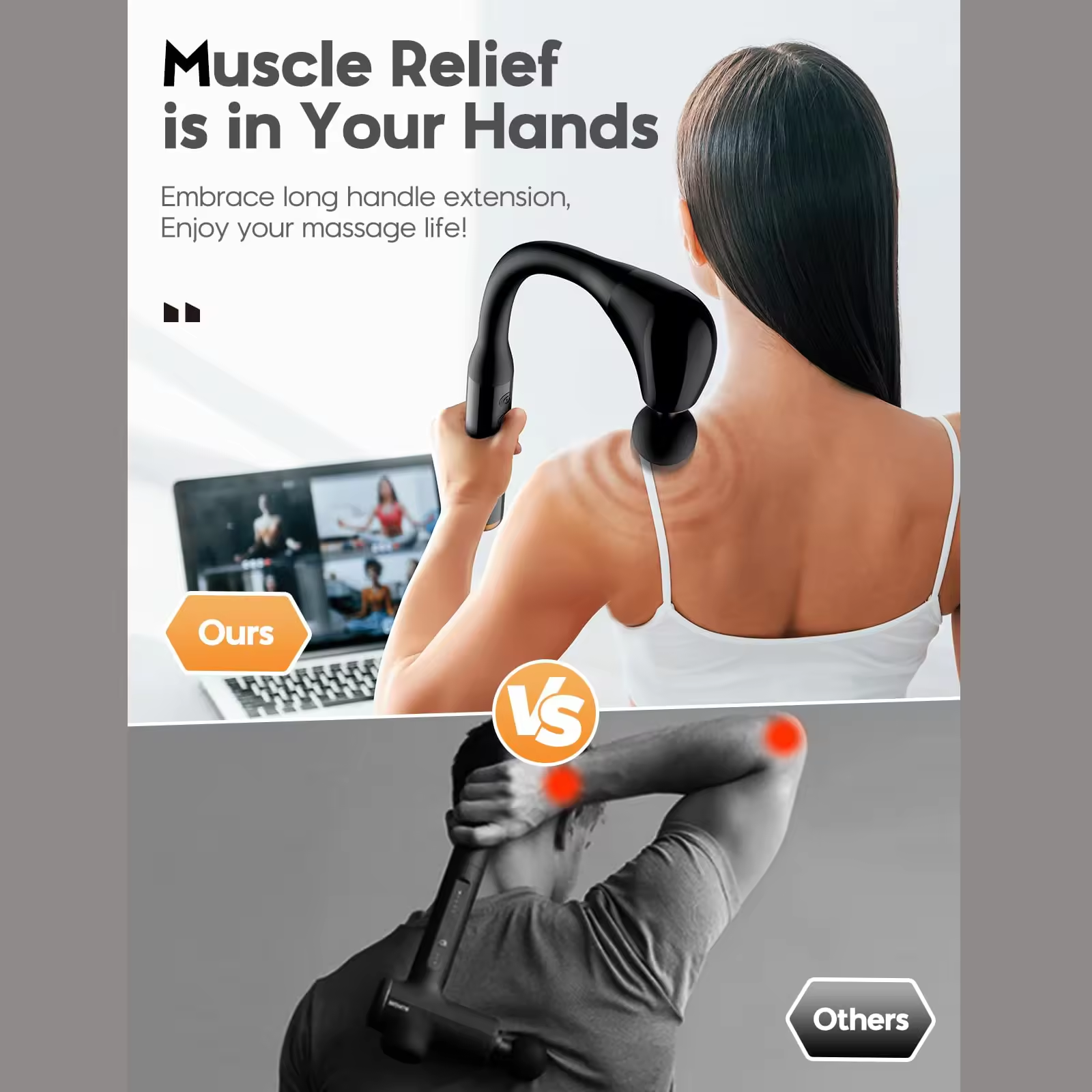 Massage Gun Deep Tissue with Extended Handle Revolutionary U-Shaped Back Massager Body Massager for Neck,Shoulder,Leg